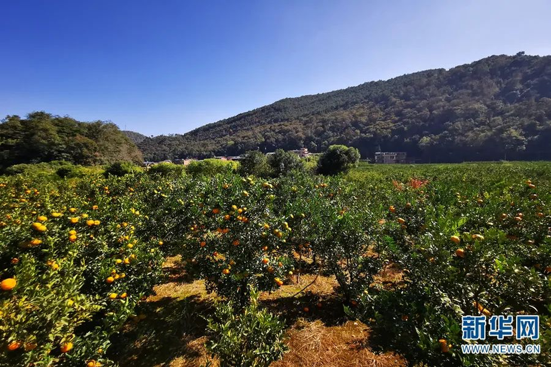 曾经“高山秃头潭无水,田薄地廋半年粮”的云南省文山州西畴县兴街镇江龙村,不仅山头披绿装,山脚也发展了620多亩林果(2020年11月20日摄)。新华网 罗春明 摄