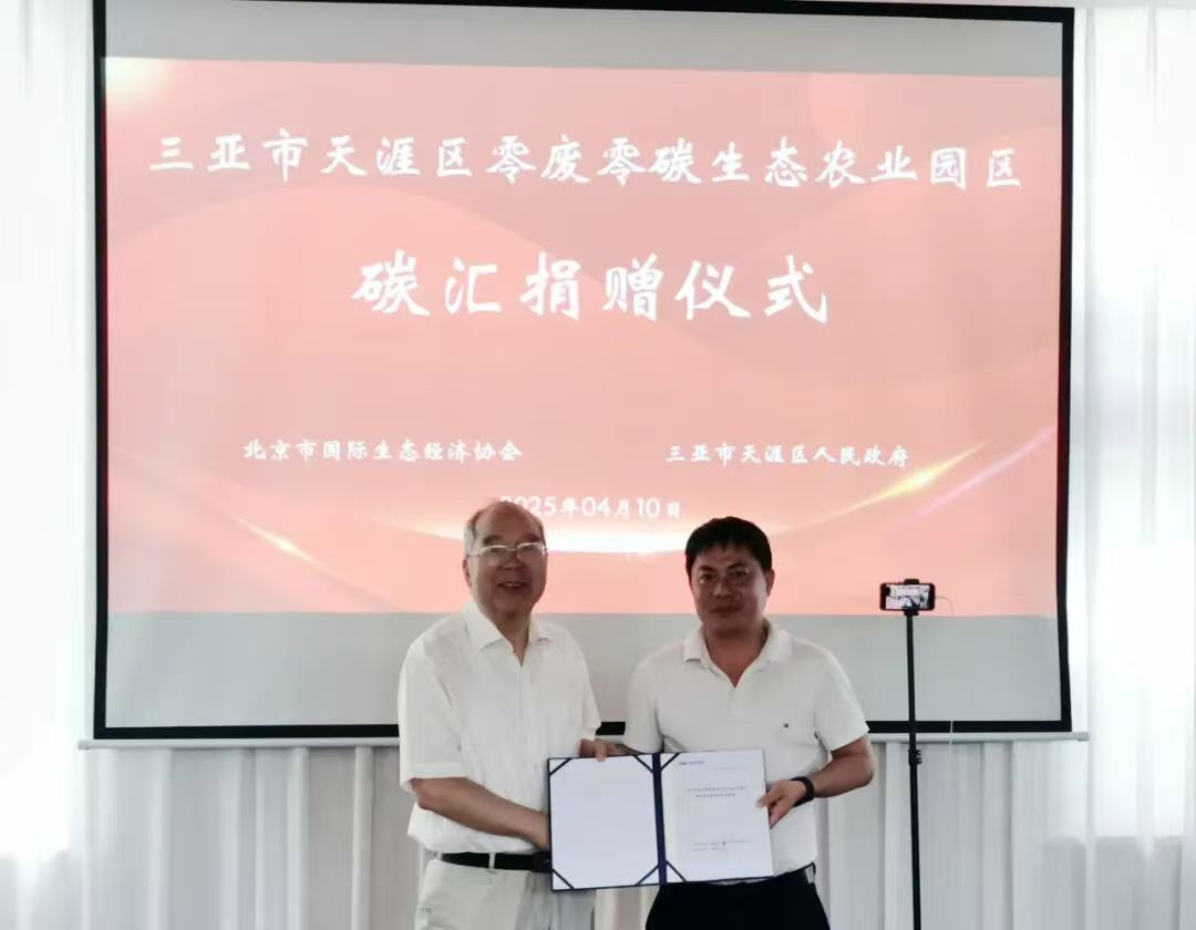2025年4 月 10 日,一场承载绿色使命的捐赠仪式在海南三亚市天涯区抱前村乡村振兴服务中心拉开帷幕 —— 北京市国际生态经济协会在此举办温室气体核证减排量捐赠活动,国家及省市领导、专家齐聚一堂,共同为三亚零废零碳生态农业发展擘画蓝图,为美丽中国建设注入乡村绿色动能。